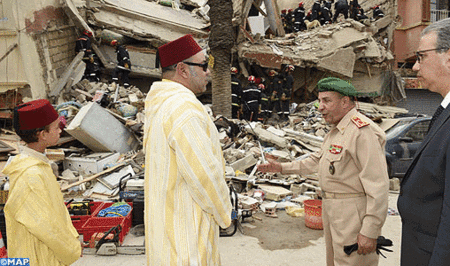 أوردت وكالة أنباء المغرب الكبير أن الملك محمد السادس، مرفوقا بولي العهد قام اليوم الجمعة بزيارة موقع حادث انهيار ثلاث عمارات الذي وقع في ساعة مبكرة من صباح اليوم بحي بوركون بالدار البيضاء، قبل أن يتوجه إلى المركز الاستشفائي الجهوي "مولاي يوسف" حيث تفقد الحالة الصحية للجرحى.